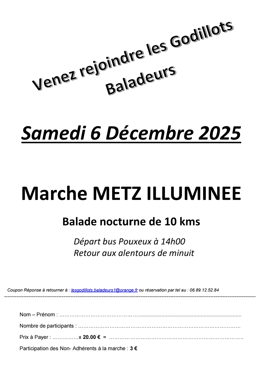 Nous vous informons également de la marche illuminée de METZ (Plus précisément Longeville les Metz), prévue